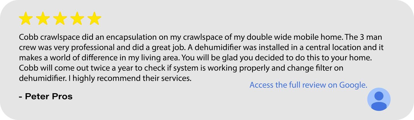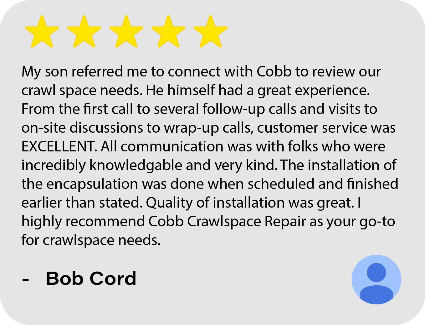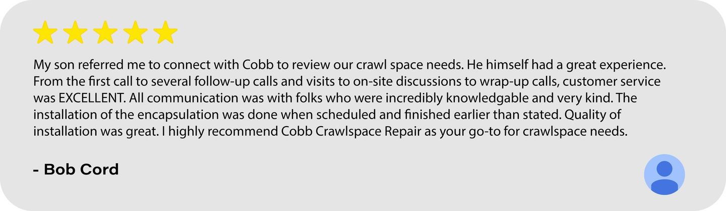 Protect your home and health with our crawlspace experts in Upstate SC! Cobb Crawlspace Repair works with homeowners to ensure crawlspaces and basements are moisture-free. We provide long term solutions to prevent harmful mold and structural damage. Our services include crawlspace encapsulation, drainage, insulation, and basement waterproofing. The health of your family is our priority! Contact us today to learn more or to schedule an inspection.