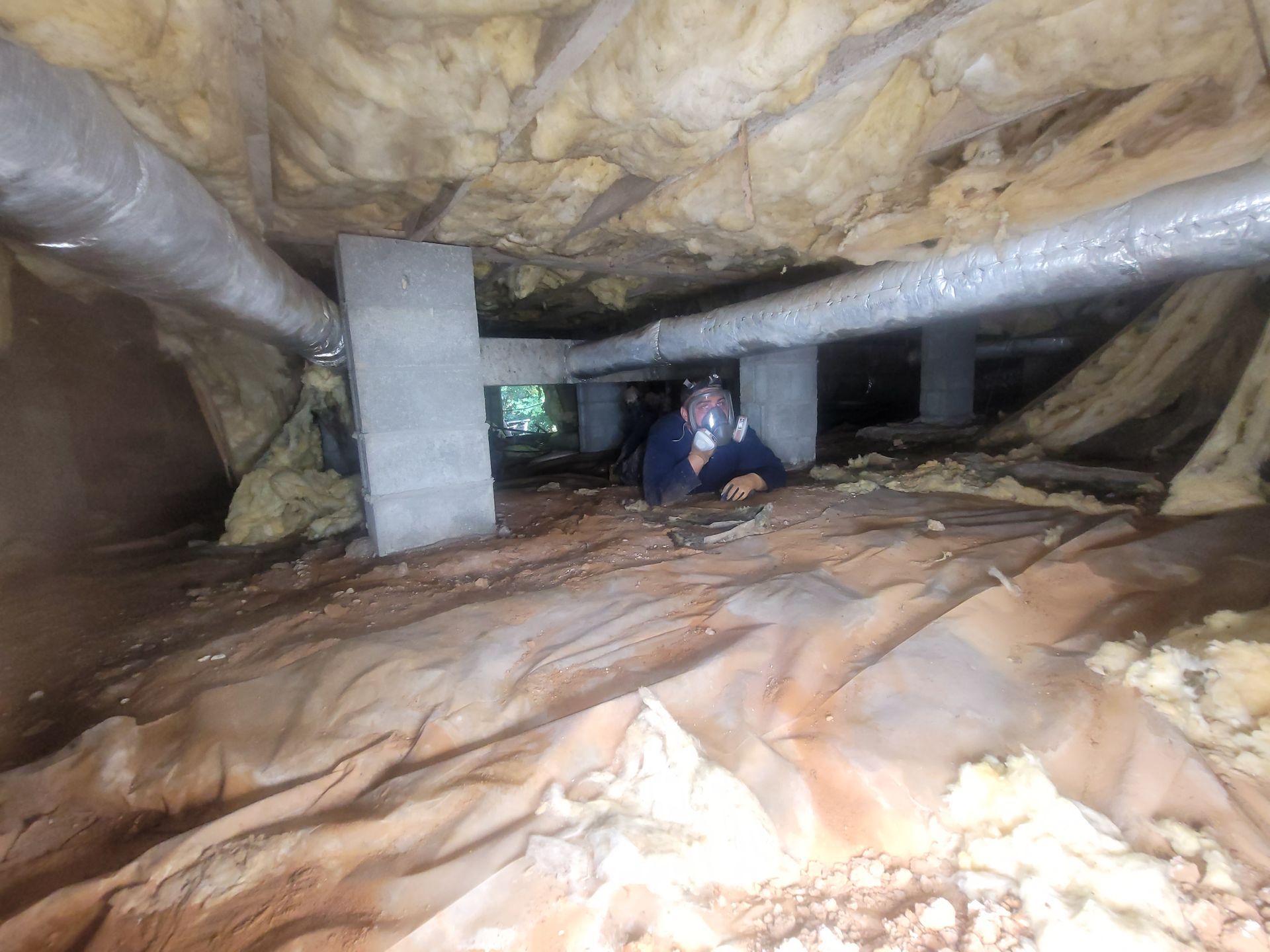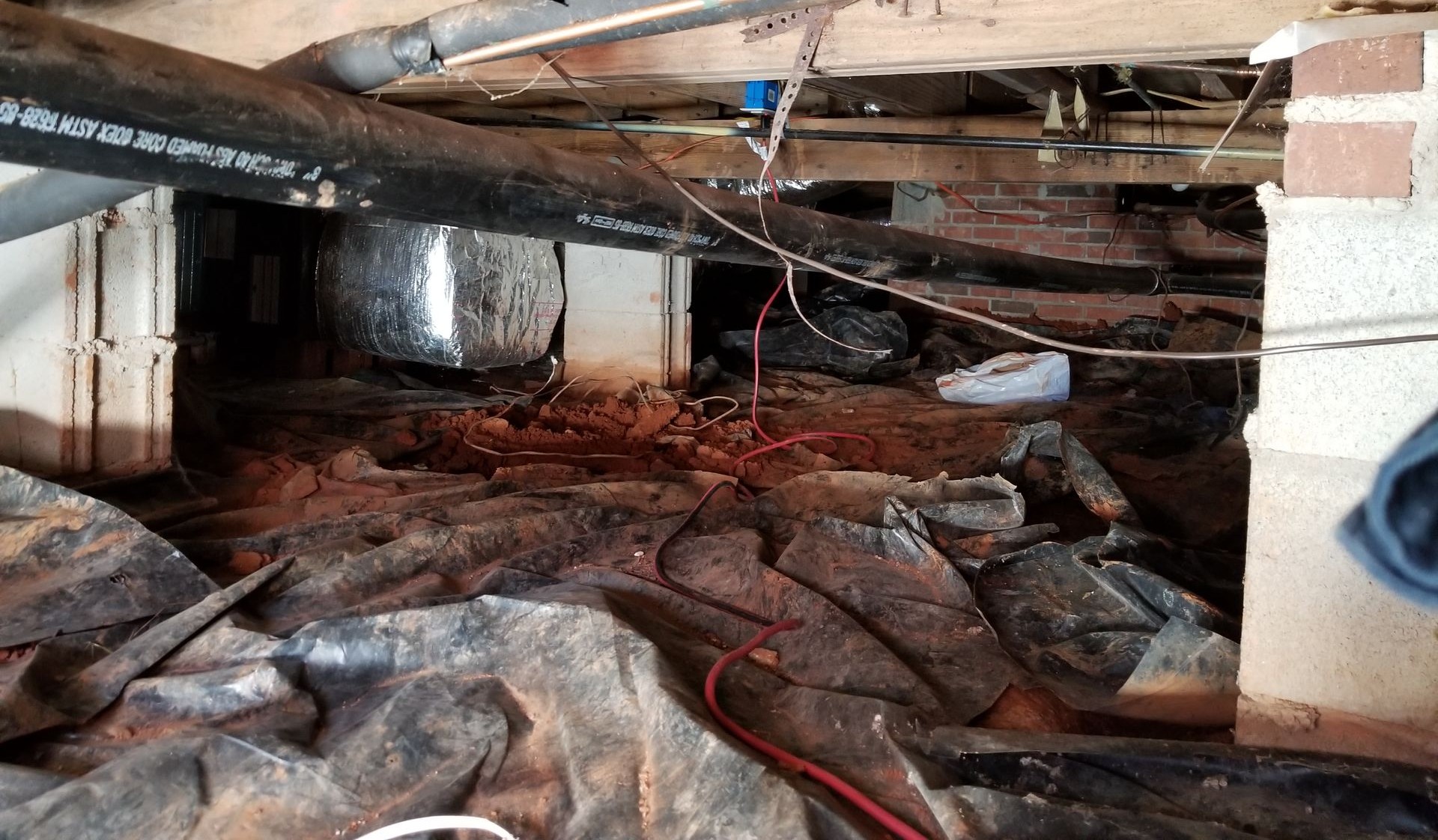 If animals or pests are able to access the crawlspace, they are likely leaving behind urine or fecal matter on your barrier (and in your insulation). If this is the case, locate and seal off any access points for pests. Take a careful look at any openings near your HVAC unit that may require metal flashing to be added, as well as around any openings in the foundation wall for pipes and wires. Examine any crawlspace doors for gaps or holes the width of your pinky or larger. These should be corrected to prevent rodent access. Once you have ensured there are no more access points, or you have had a crawlspace contractor complete a rodent exclusion, you may consider replacing the barrier depending on how heavily it is soiled. Any bacteria and contaminants from animal waste can be picked up into the air through the home's natural ventilation process, known as the stack effect, and enter the living space above. This same principle is what makes fungi in the crawlspace a concern in the home above.